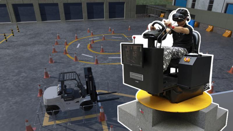 模拟驾训及虚实整合的方式,让使用者虽是在虚拟内但实际都能操作机具操控,操驾仿真模块有包含堆高机、铲装机、天车、吊车等四合一应用。